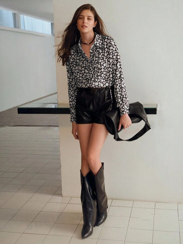 Chiffon Printed Ruffle Trim Top