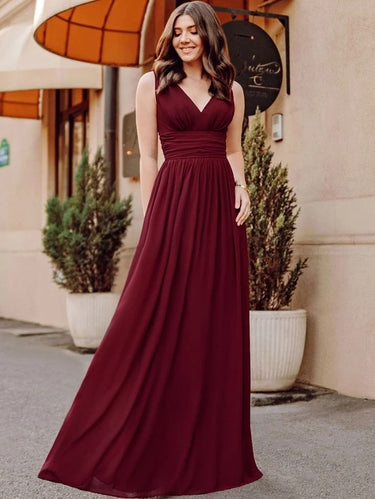 Double V Neck Ruched Wide Waistband Prom Dress