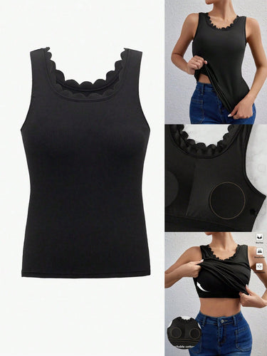 Shell Trim Crew Neck Sleeveless Casual Black Tank Crop Top