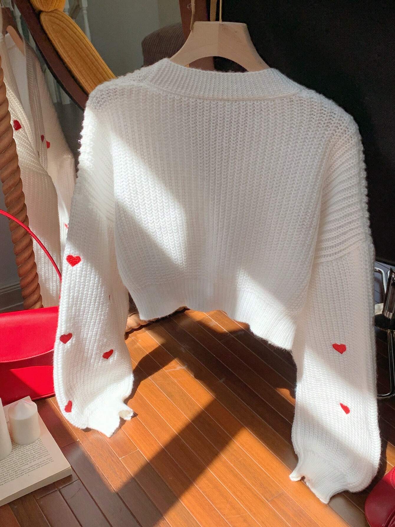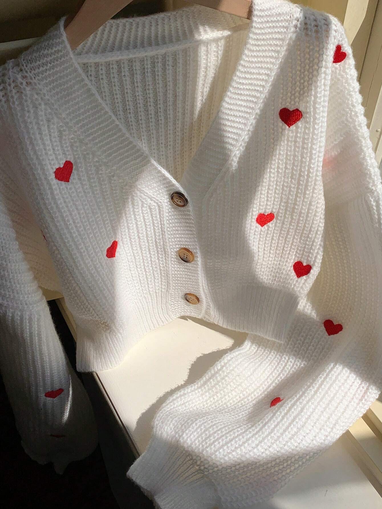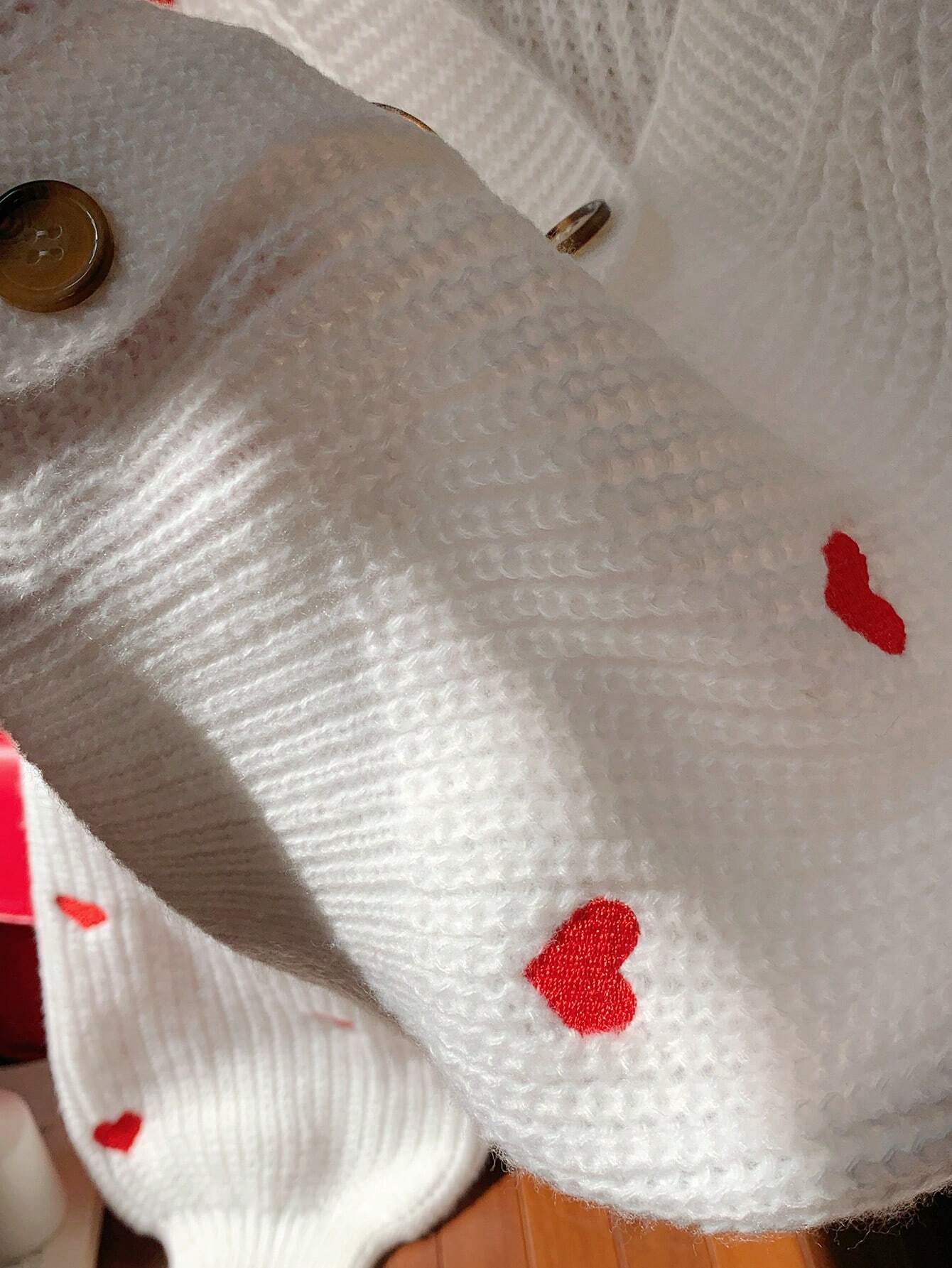 Heart Pattern Oversized Drop Shoulder Long Sleeve Cardigan
