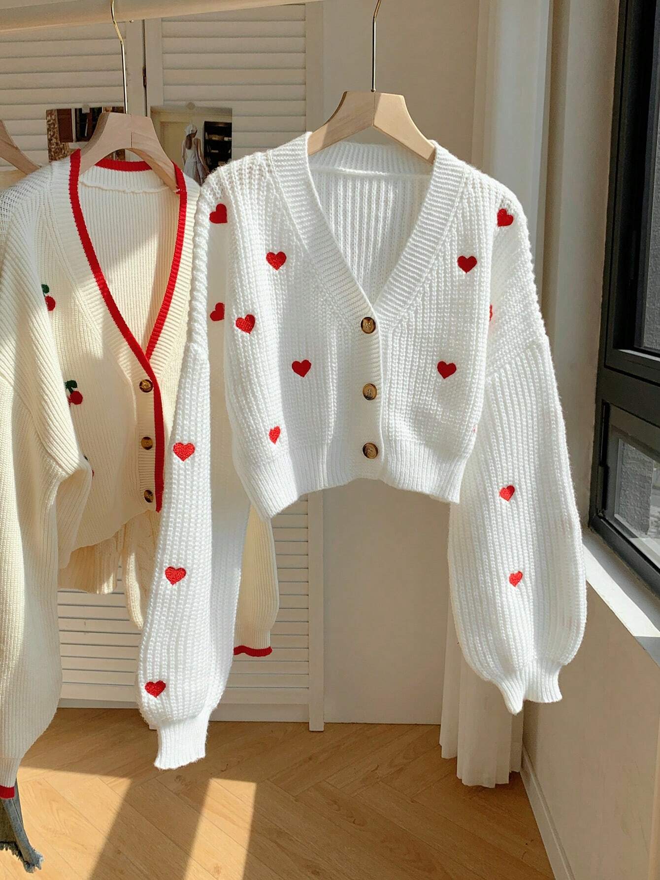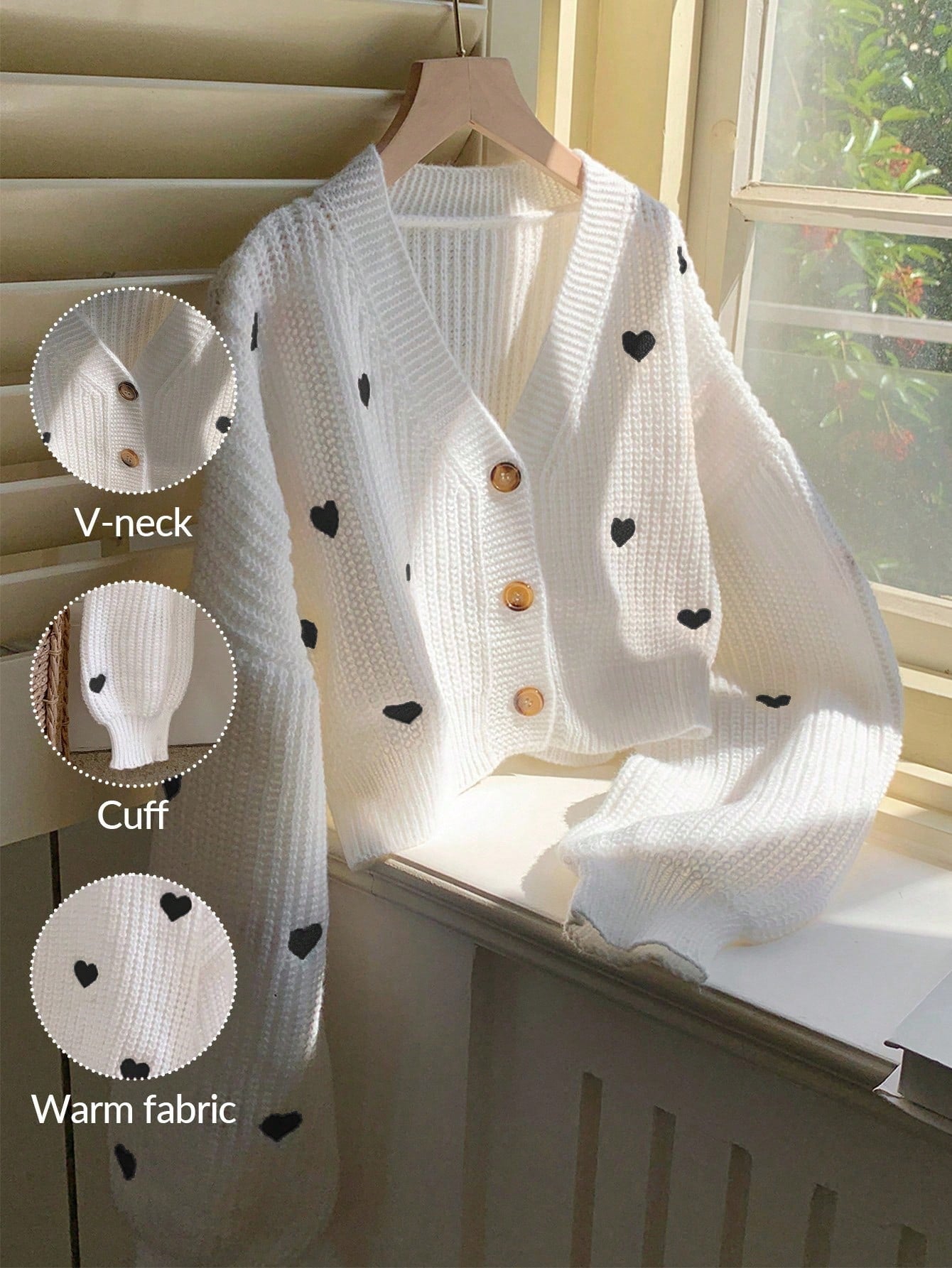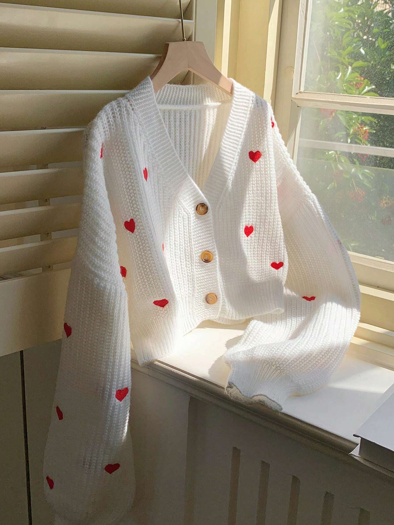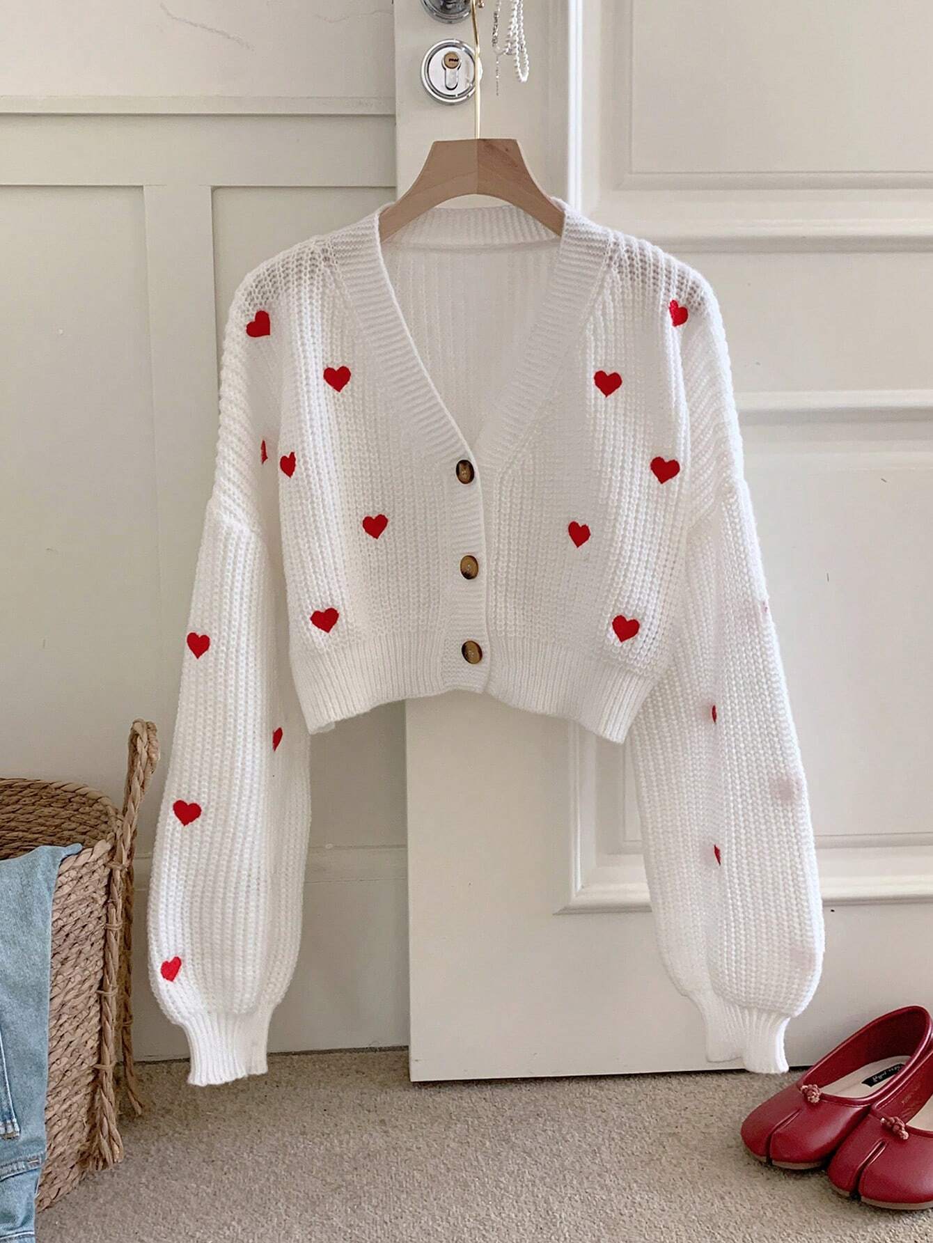 Heart Pattern Oversized Drop Shoulder Long Sleeve Cardigan