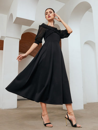 Ruffle Trim Shirred Crisscross Yoke Dress( CLEARANCE SALE