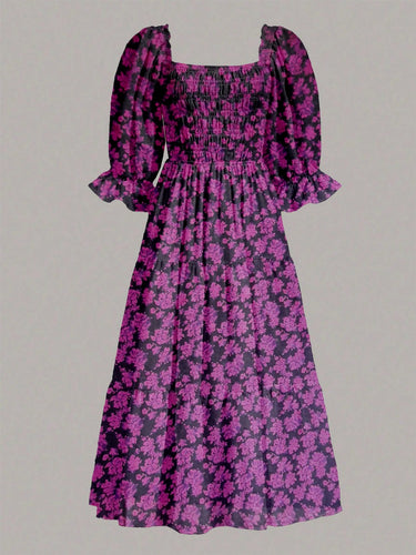 Parien MOD Chiffon Floral Ruffle Hem Dress(Clearance Sale)
