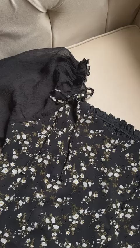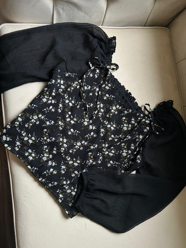 Black low shoulder gathered crop blouse