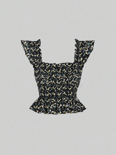 Parien Mesh Floral Square Top