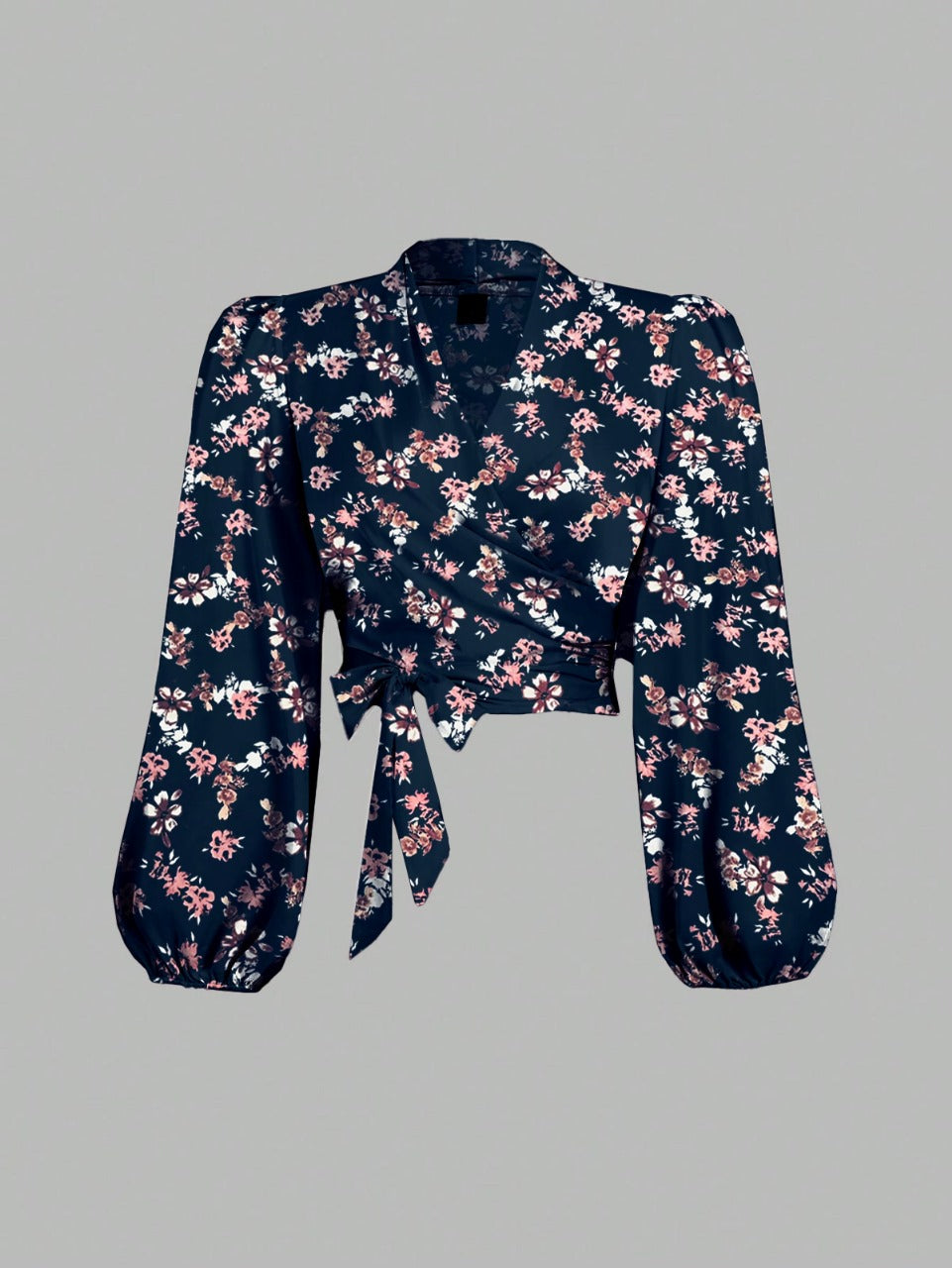 Sweetheart Neck Puff Sleeve Crop Blouse