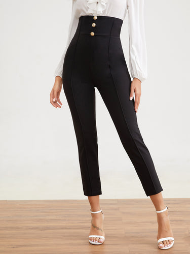Buttoned Detail Wide Waistband Pants( clearance sale)