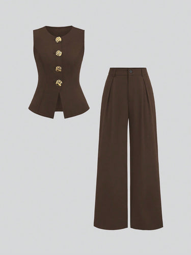 Gold Buttons & Flowing Wide Leg Pants