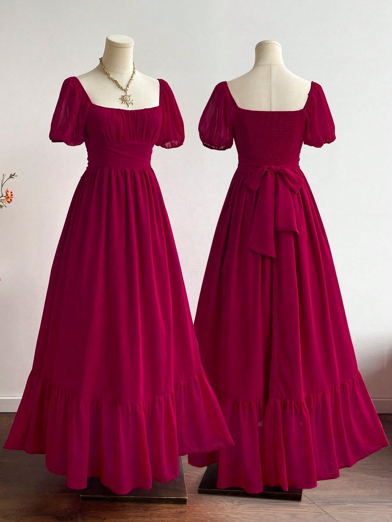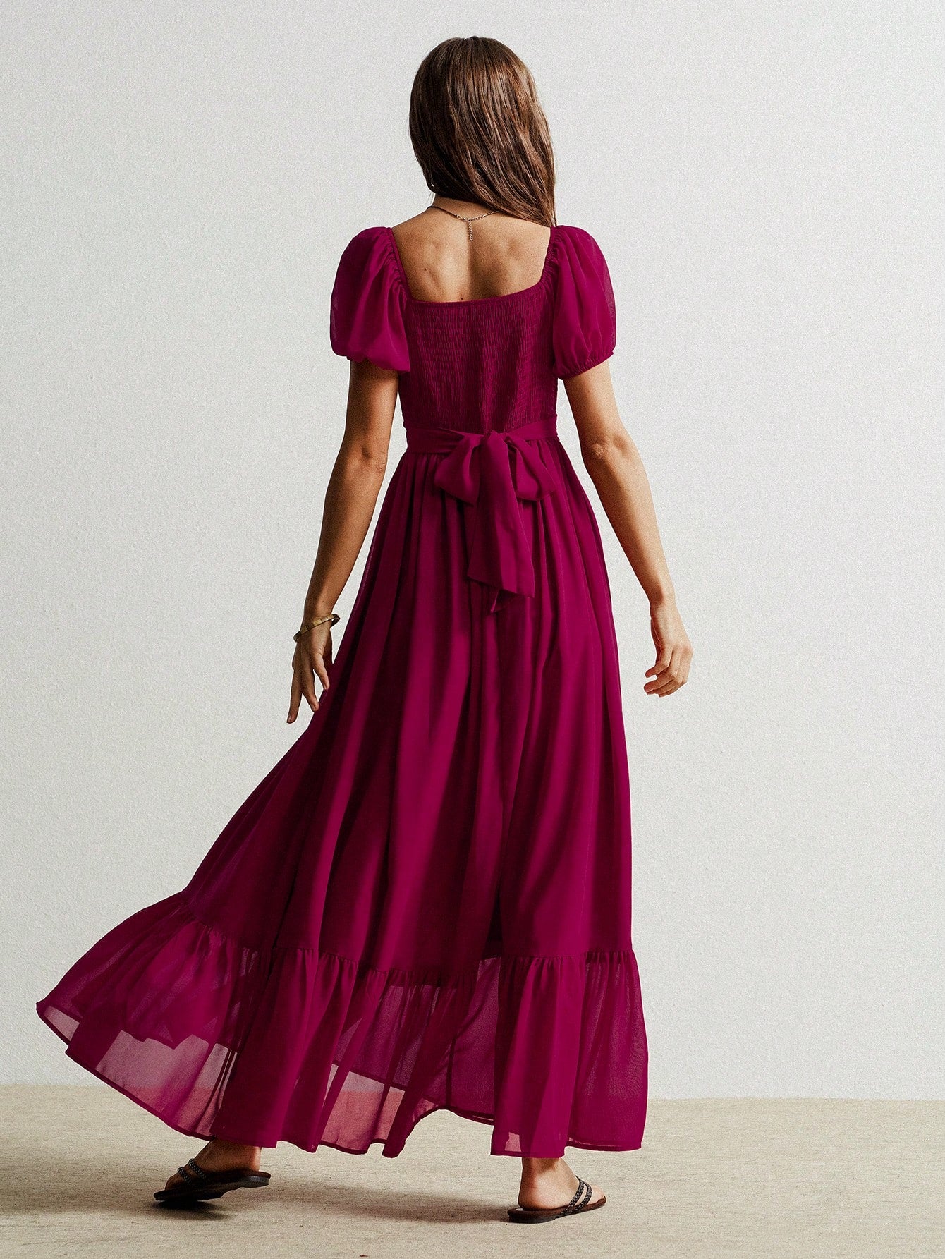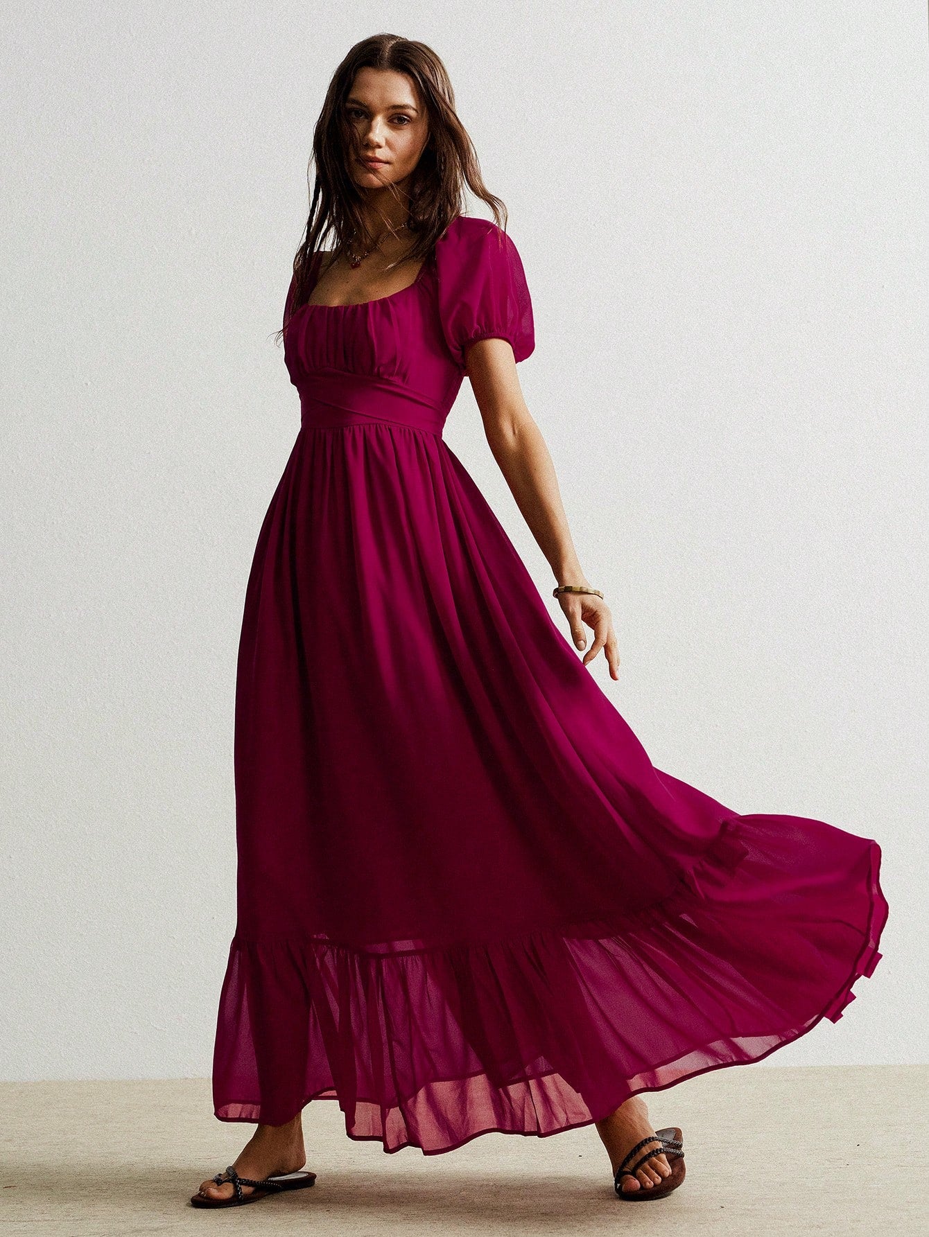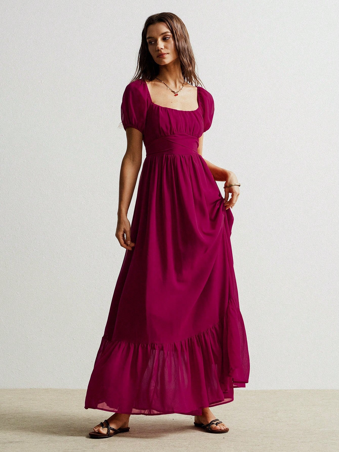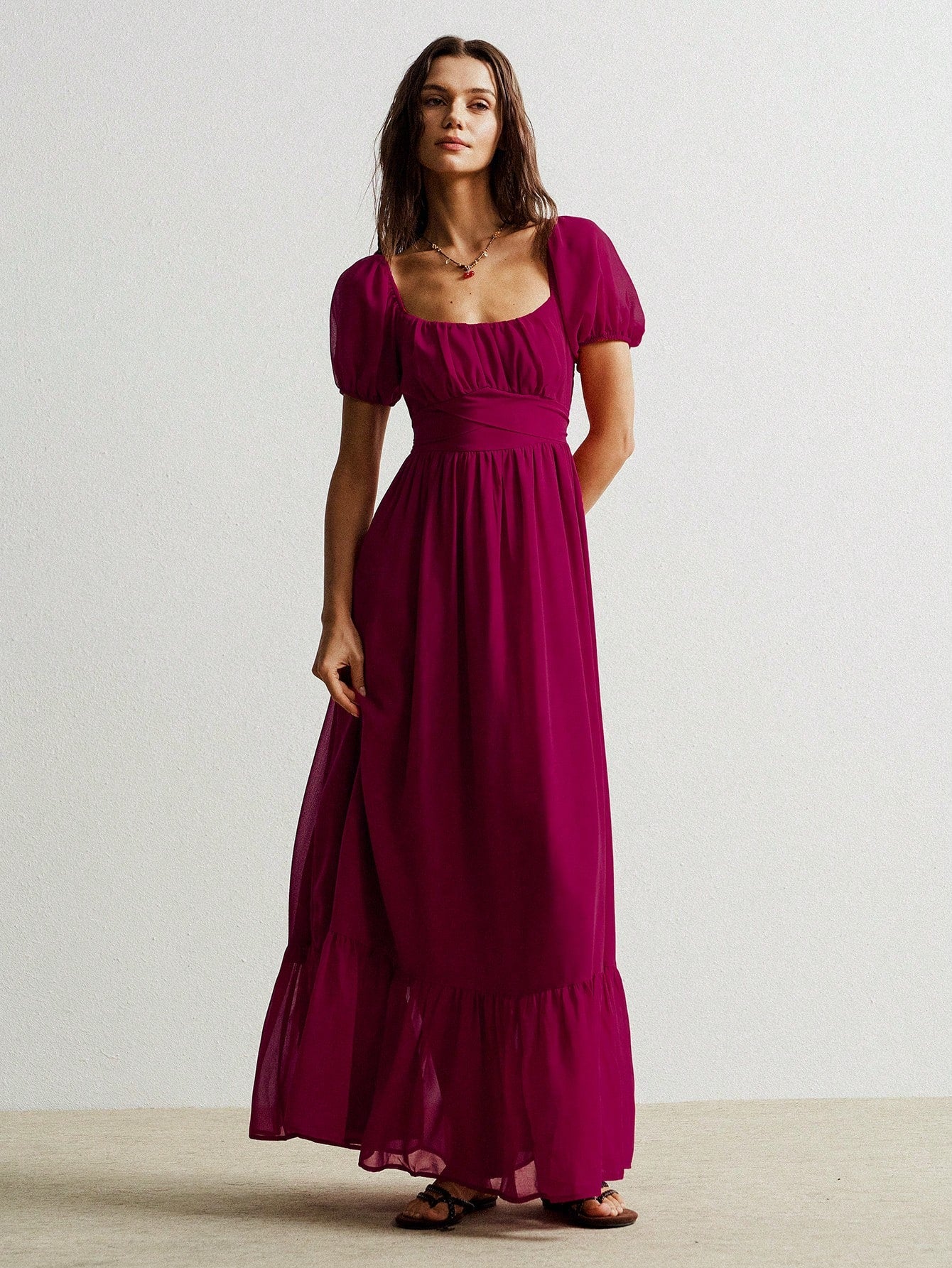 Parien Cinched Waist Chiffon Long Dress