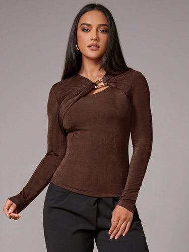 Micro-Glitter Metal Decoration Asymmetric Long Sleeves Top