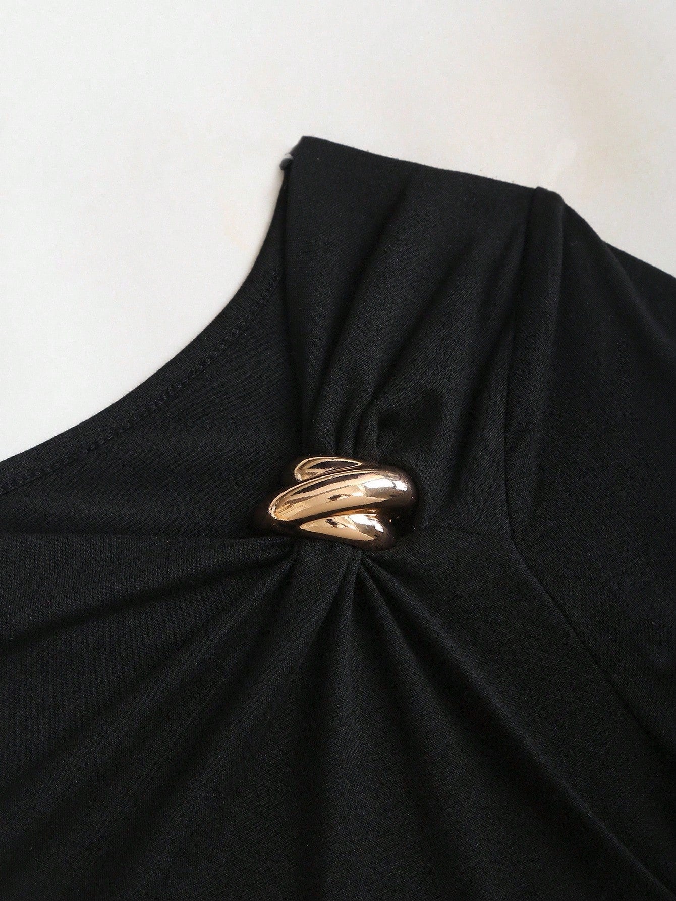 Asymmetric Shoulder Slim Fit Flattering T-Shirt