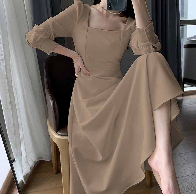Long Sleeve Square Neck Fit & Flare Midi Dress