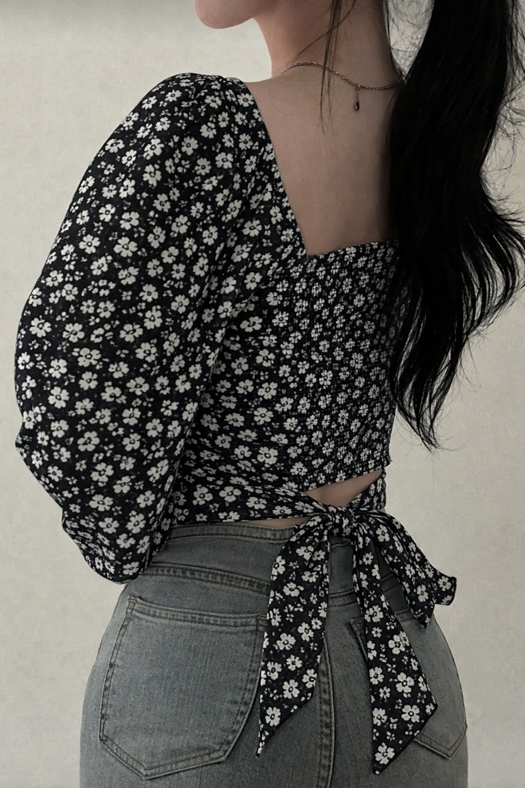 Parien Chiffon Tie Back Floral Long Sleeve Top