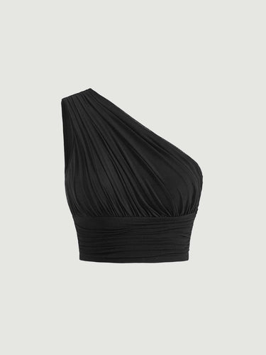 Parien One Shoulder Ruched Red Slim Fit Crop Top
