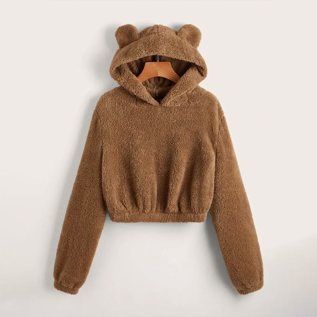 Parien Solid 3D Ear Patched Teddy Hoodie
