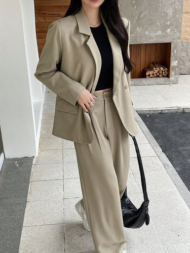 Wide-Leg Pants & Blazer Solid Color Suit Set