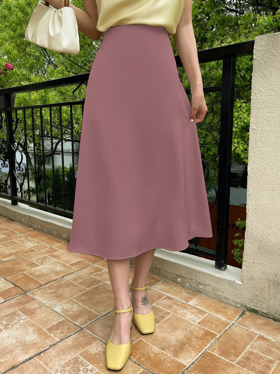 Purple High Waist Solid A-line Skirt