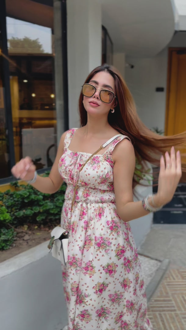 Parien Floral Ruched Bust Ruffle Hem Cami Dress