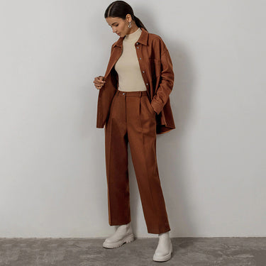 2pcs Parien Minimalist Wool Oversized Brown Co-ord Set
