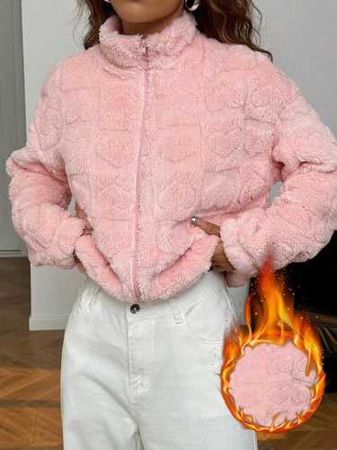 Heart-Shaped Plush Long-Sleeved Stand-Collar Jacket