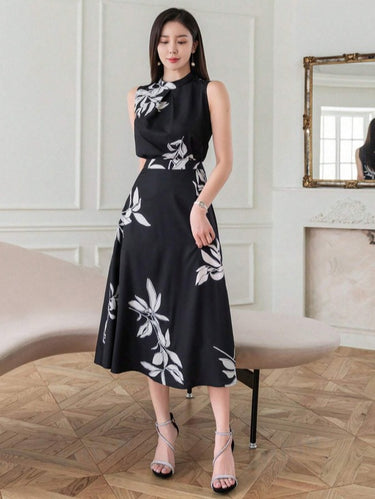 Two piece Halter Sleeveless Top & A-Line Skirt Set