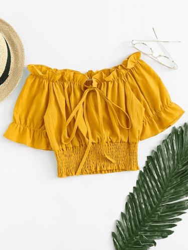 Tie Front Frill Bardot Shirred Crop Top( Clearance sale