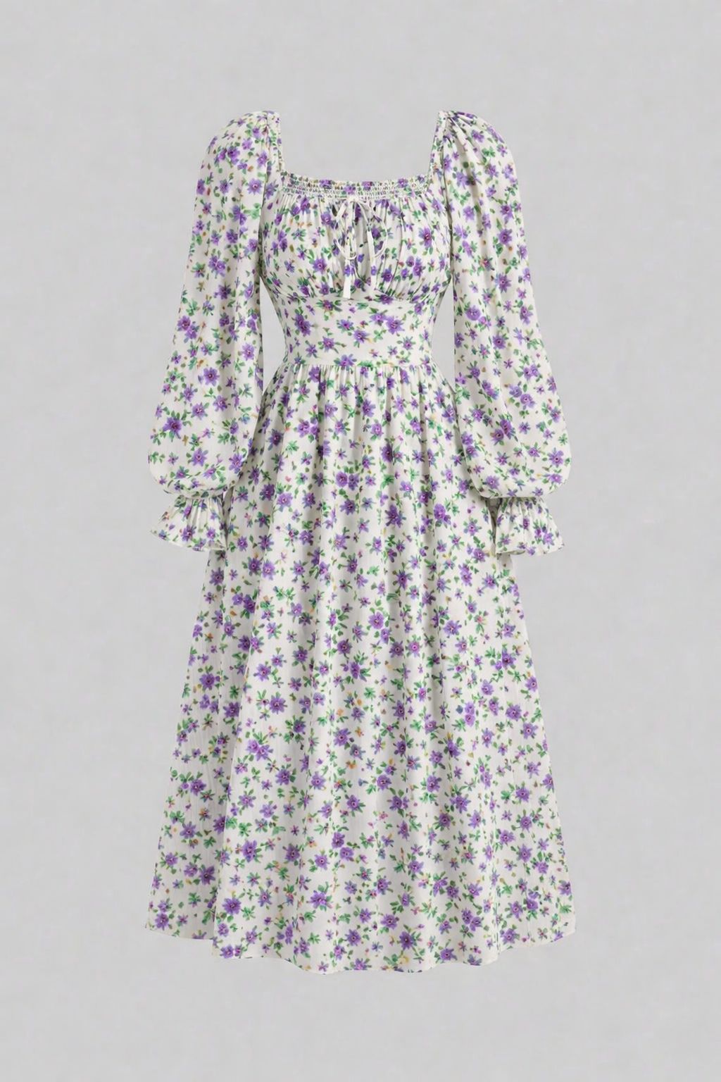 Parien Square Neck Flare Sleeve Ruched Dress
