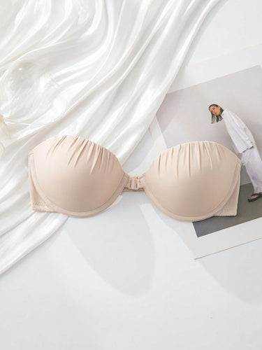 Discover the perfect blend of comfort and support with our Solid Underwire Bra in versatile beige. Designed with a simple and classic style, this bra features a front-close design and underwire support for a secure and flattering fit. The molded lining and slight stretch fabric provide high support and a smooth silhouette, making it an essential addition to your lingerie collection.