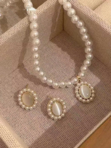 White / Earrings + Necklace Set / one-size - Sold out - Rs.3,490
