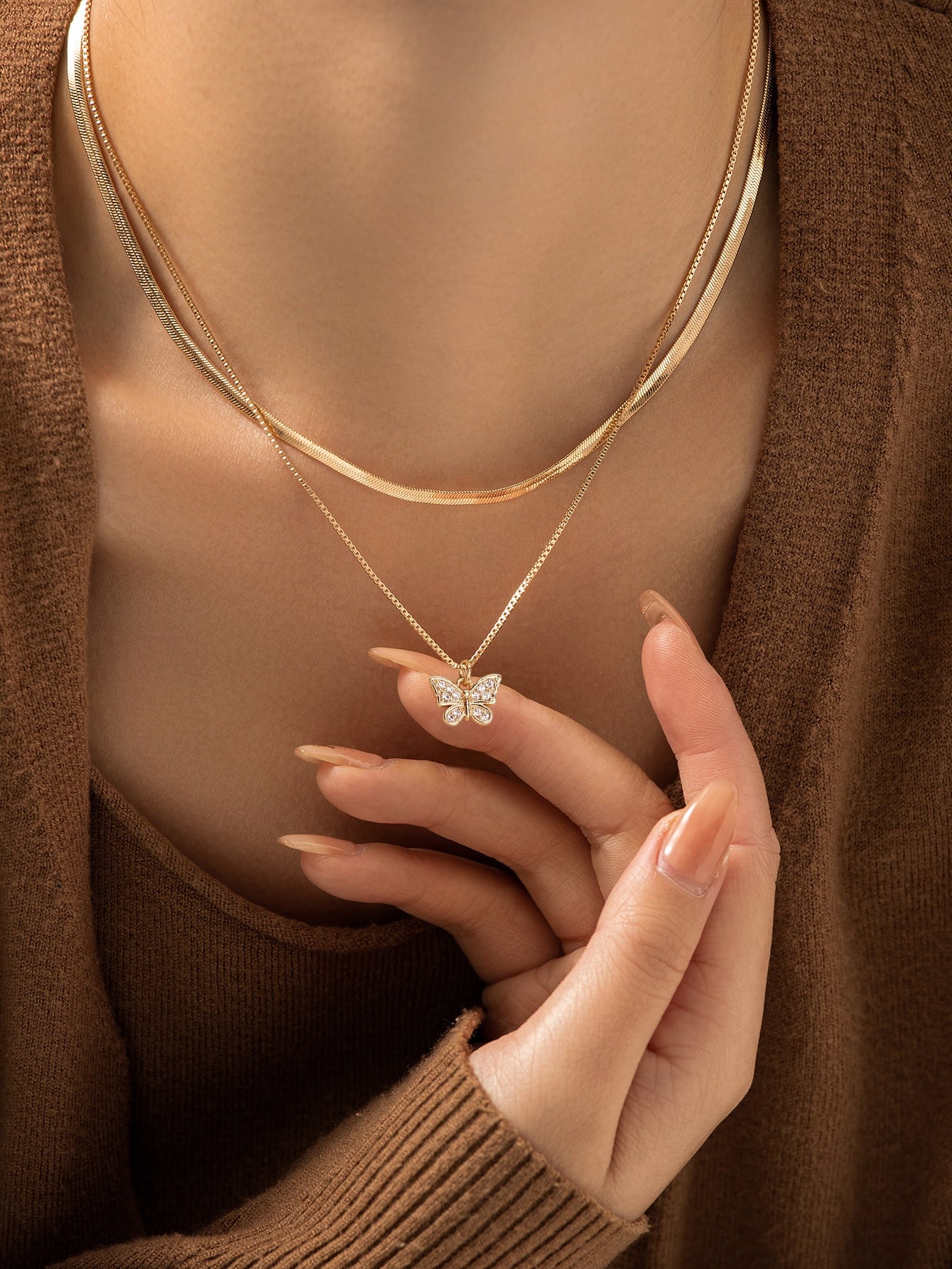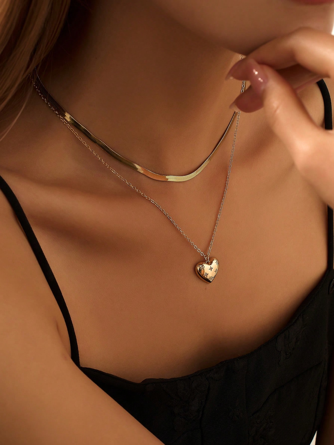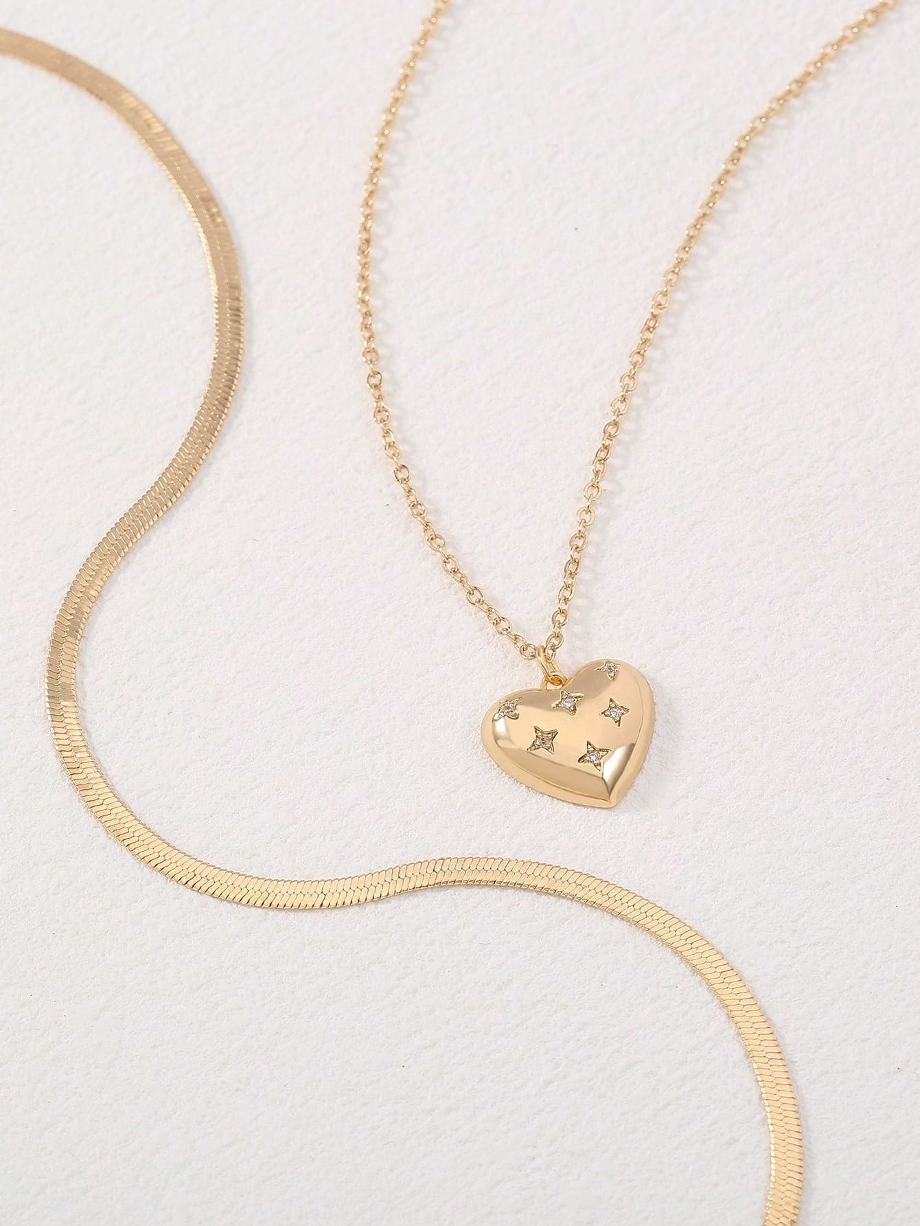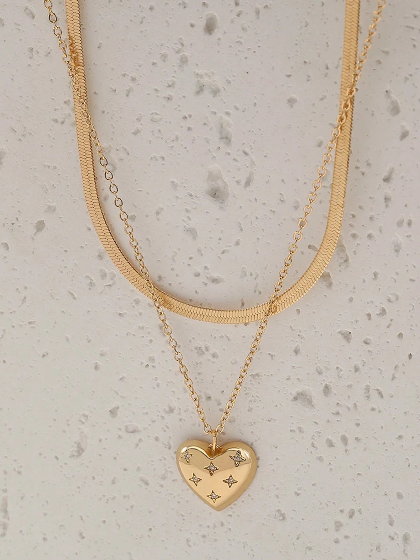 Multi-Layer Chain Necklace With Heart Pendant