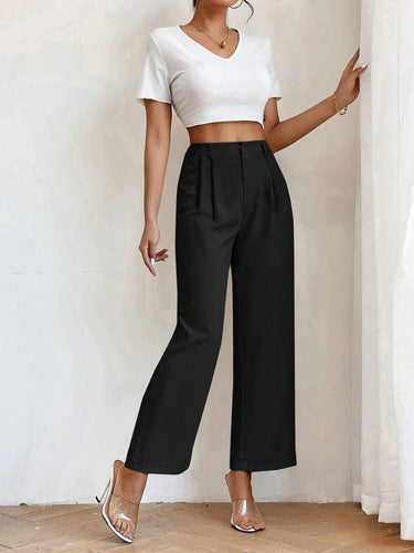 Introducing the PETITE Plicated Detail Straight Leg Pants by Parien House. These stylish pants are designed to flatter a petite frame with a straight leg cut. The plicated detailing adds a touch of elegance to the overall look. Made with high-quality materials, these pants are both comfortable and durable. Dress them up with heels for a chic office look or pair with sneakers for a more casual vibe. Elevate your wardrobe with the Plicated Detail Straight Leg Pants from Parien House.