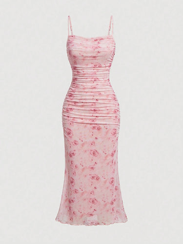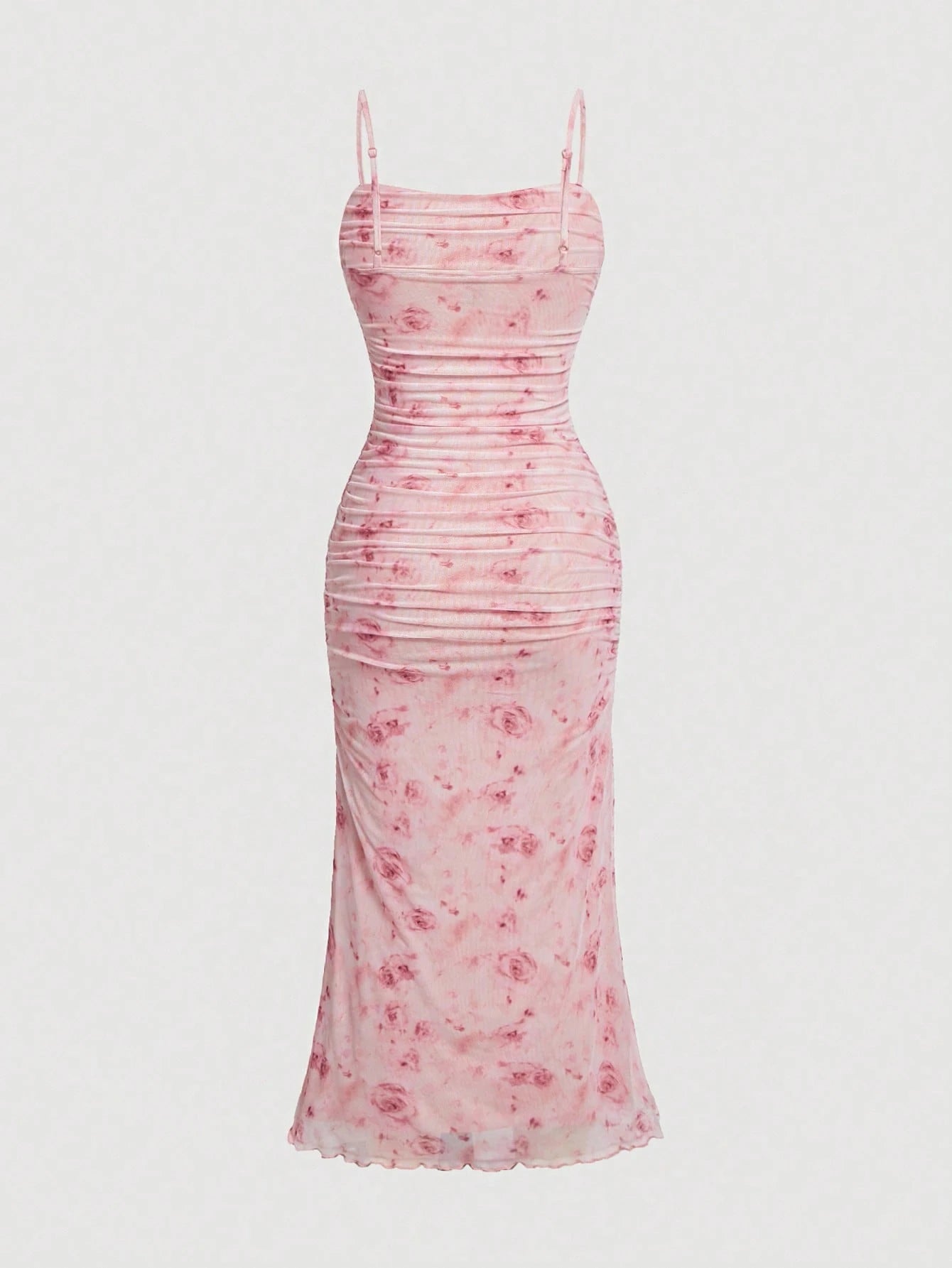 Lettuce Trim Mesh Slim Fit Valentine Day Pink Cami Dress
