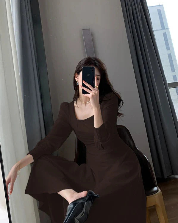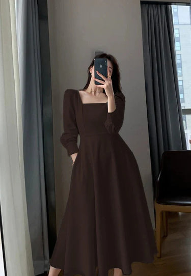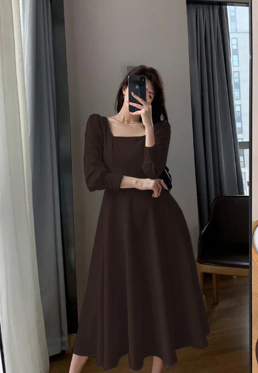 Brown Square Neck Fit & Flare Midi Dress