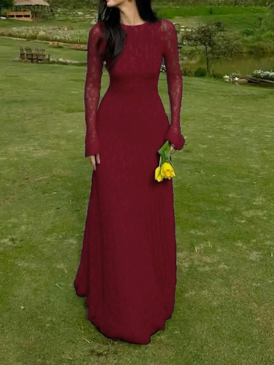 The Elegant Burgundy Lace A-Line Dress combines timeless grace with modern design. Featuring a round neckline, delicate contrast lace details, and a flattering high waist A-line silhouette, this dress delivers effortless sophistication for formal or evening occasions. Crafted from medium-stretch lace fabric, it offers comfort and structure while maintaining its elegant drape.