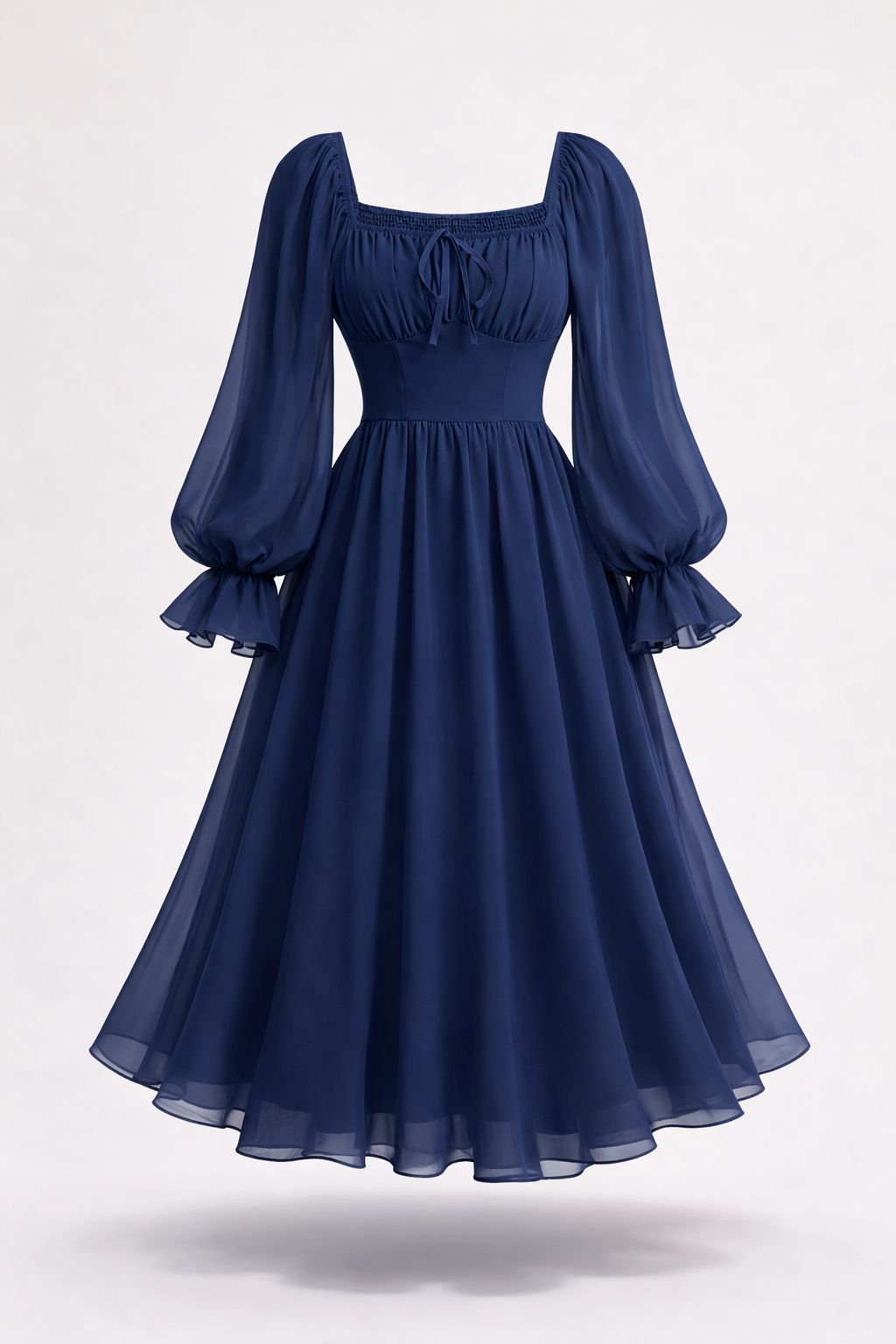 - Empire waist and puffed sleeves for a flattering silhouette