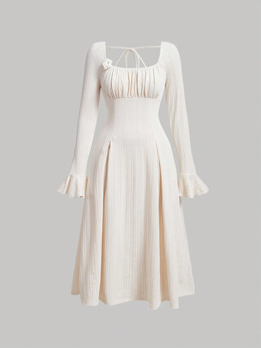 Parien Ruched Bust Flare Sleeve Sweater Dress