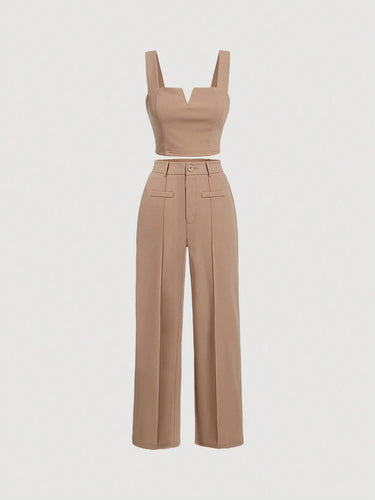 Parien Notched Neckline Crop Tank Top & Wide Leg Pants