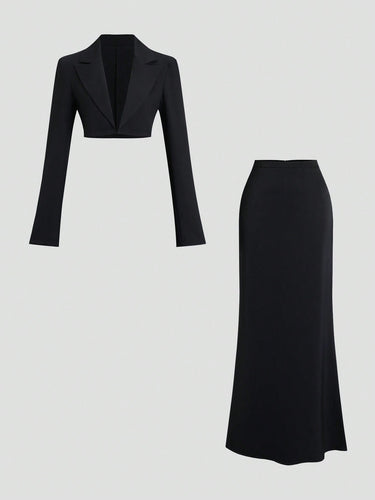 Lapel Collar Long Sleeve Jacket & Fish Tail Skirt ( Set)