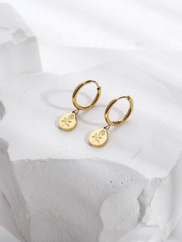 1pair Stainless Steel 18k Gold Plated Rose Flower Earrings