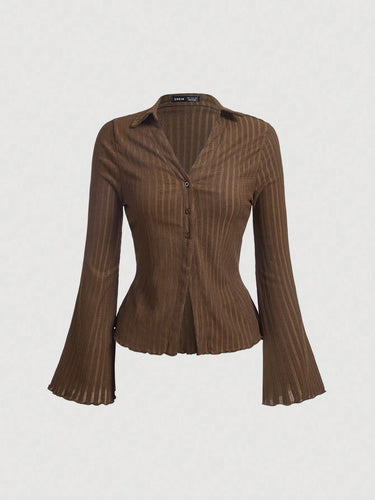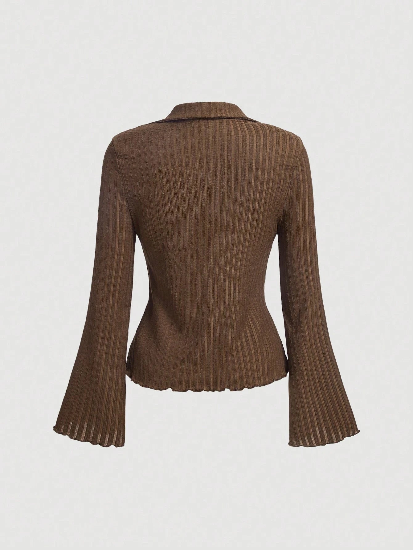 Lettuce Trim Flare Sleeve Button Placket Tee