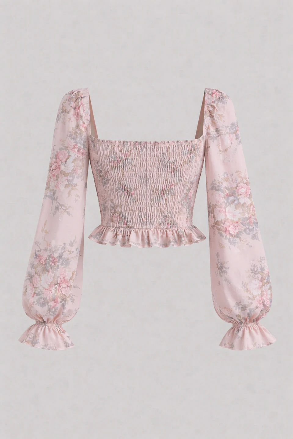 Tie Front Flounce Sleeve Blouse& Floral Maxi Skirt With Elastic Waistband