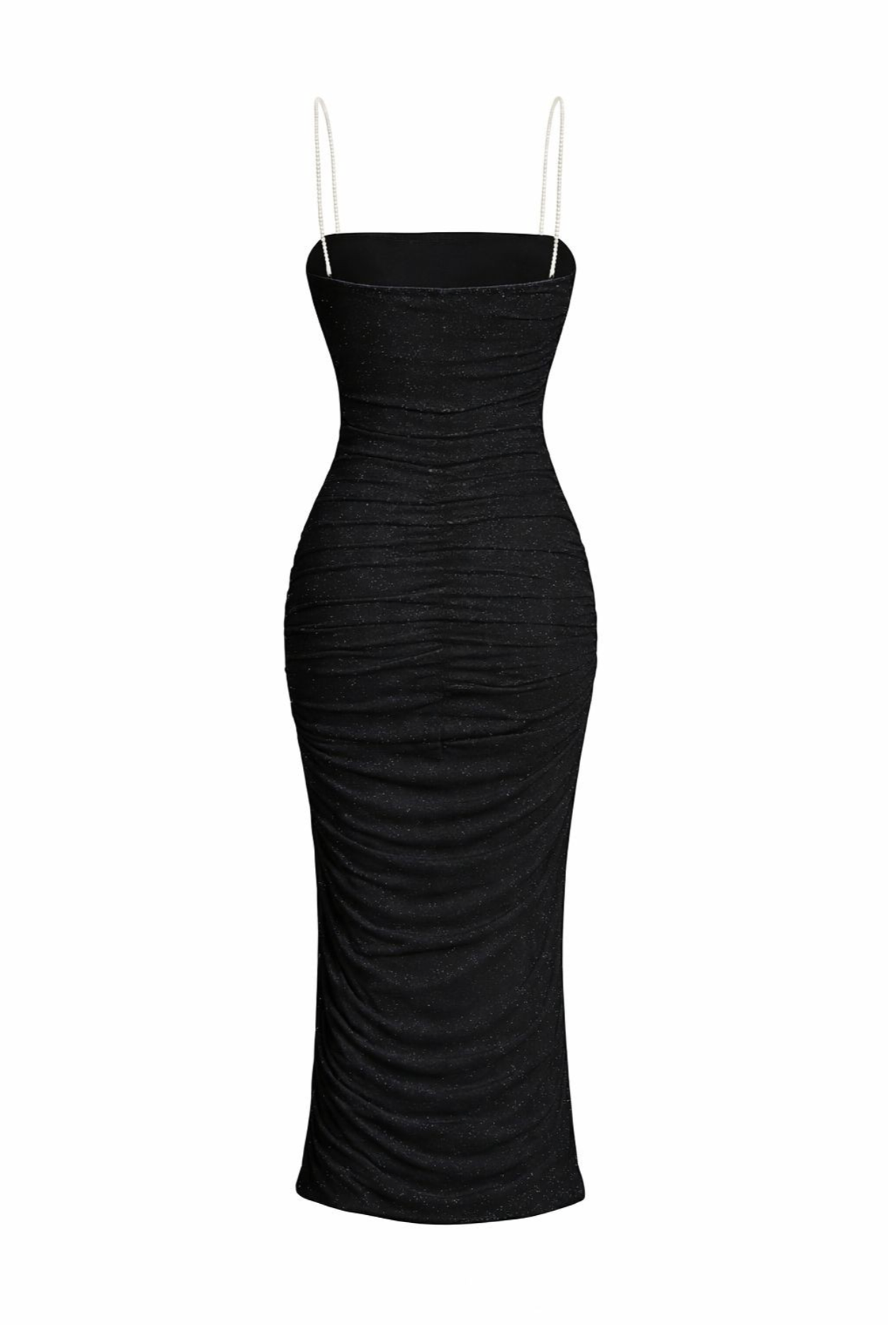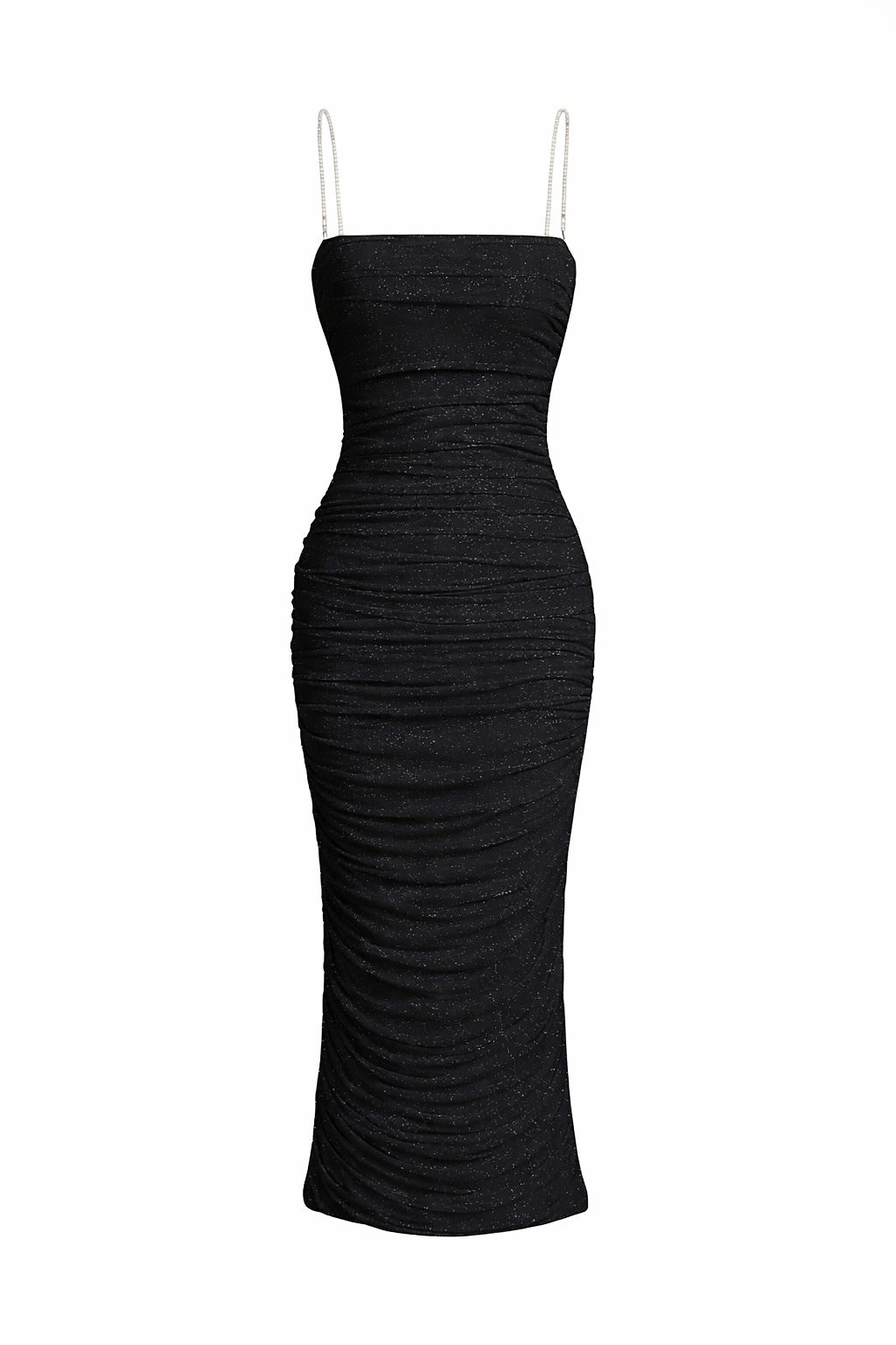 Looking for an elegant and glamorous dress for a special occasion? Consider the Chain Detail Ruched Cami Dress, perfect for a formal event, cocktail party, or evening out. This dress features a flattering ruched design and a sexy pencil hem shape that will accentuate your curves and make you feel confident and stylish.