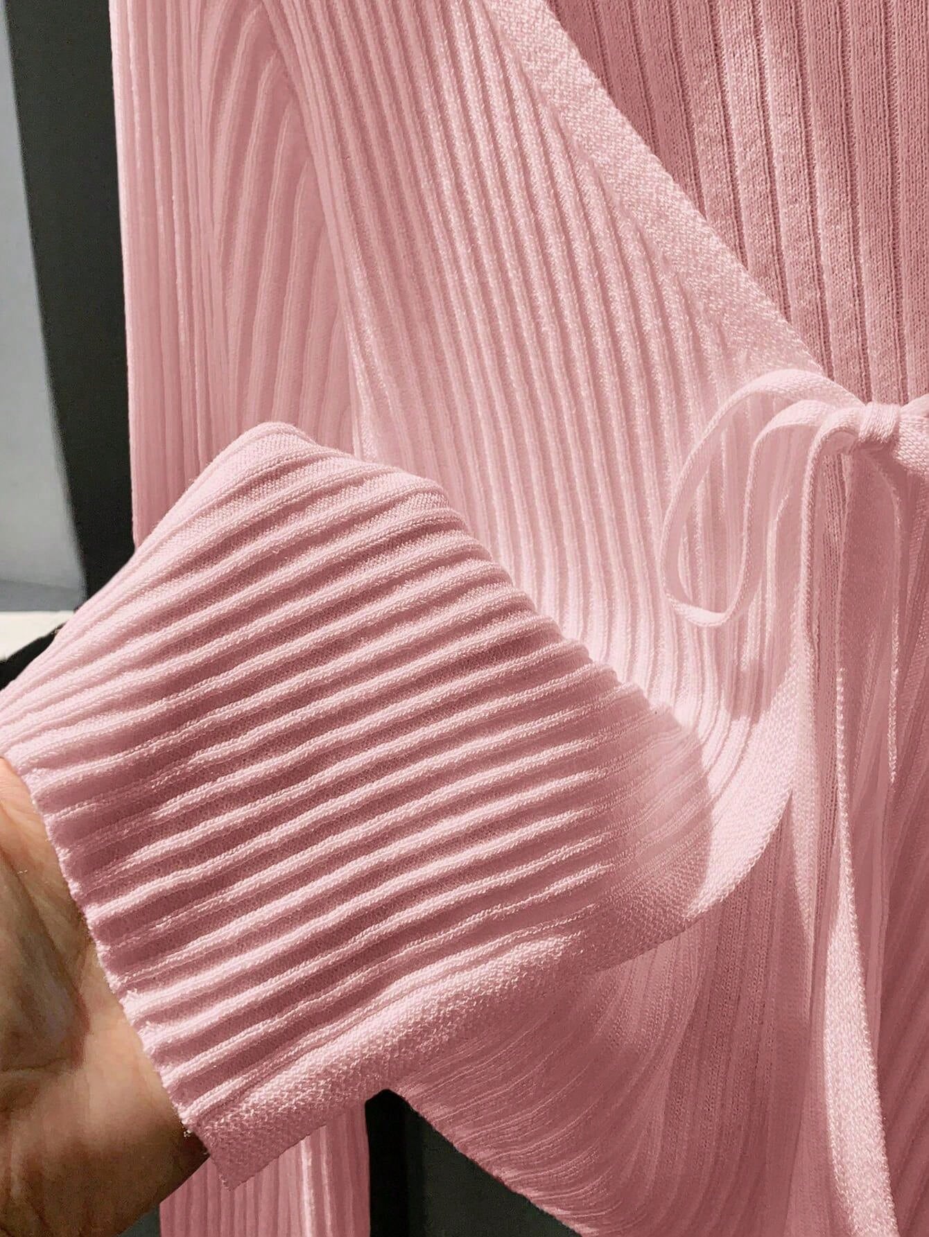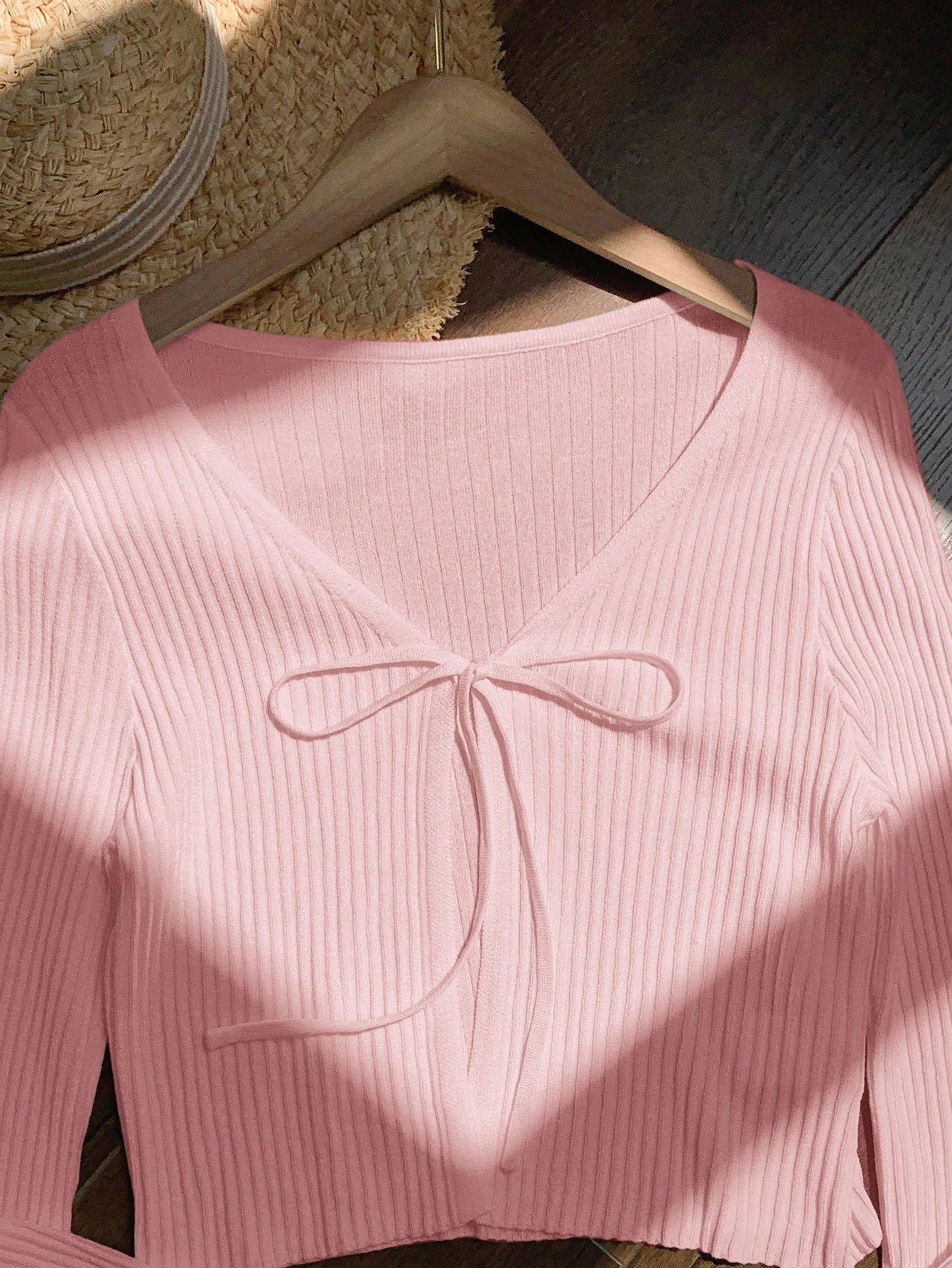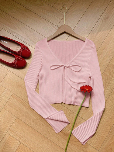 Ribbed Knotted Long Sleeve Knit Top