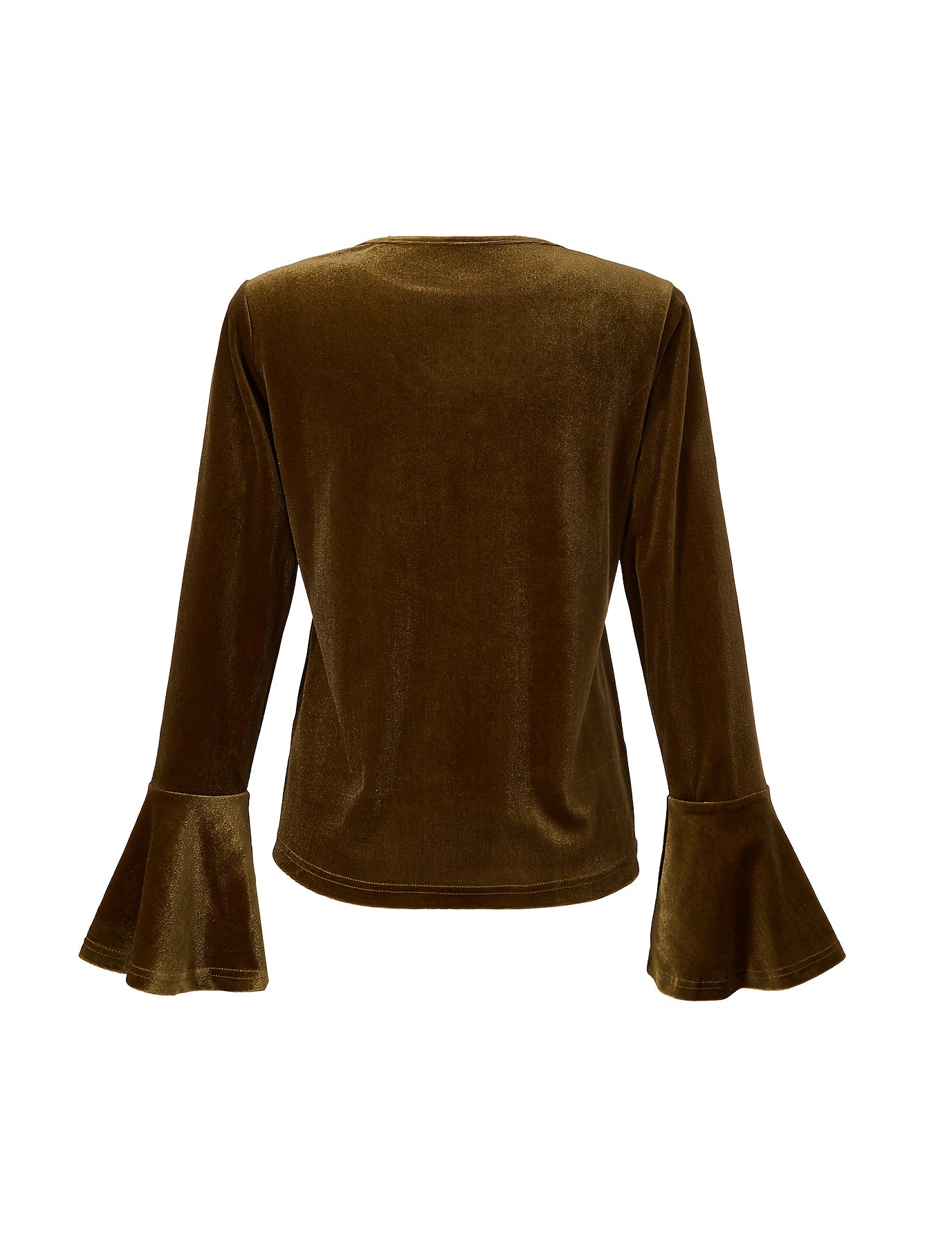 Round Neck Velvet Flare Sleeve Long Sleeve Top