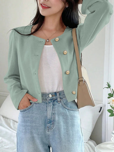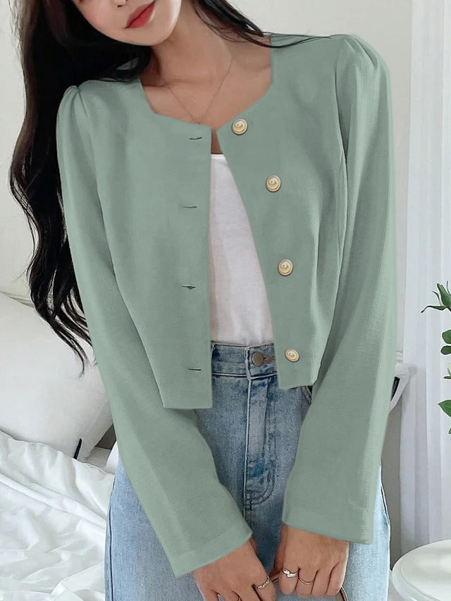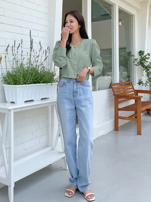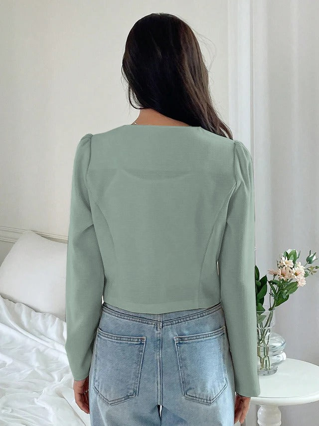 Solid Button Front Crop Blouse