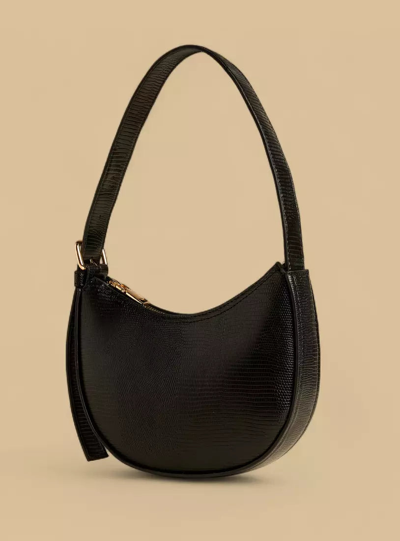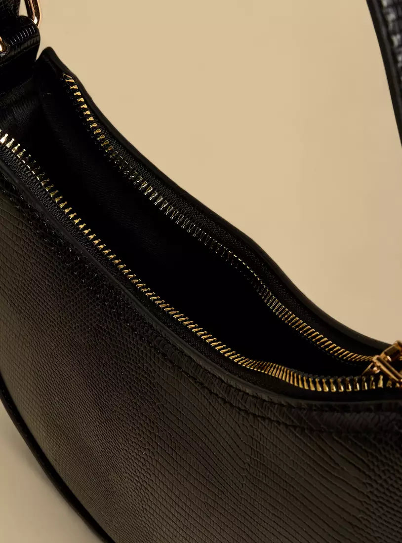 Textured Shoulder Bag with Zip Closure