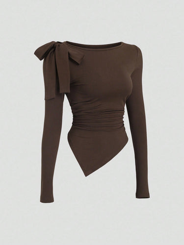 Tie Bow Decor Asymmetric Hem T-Shirt