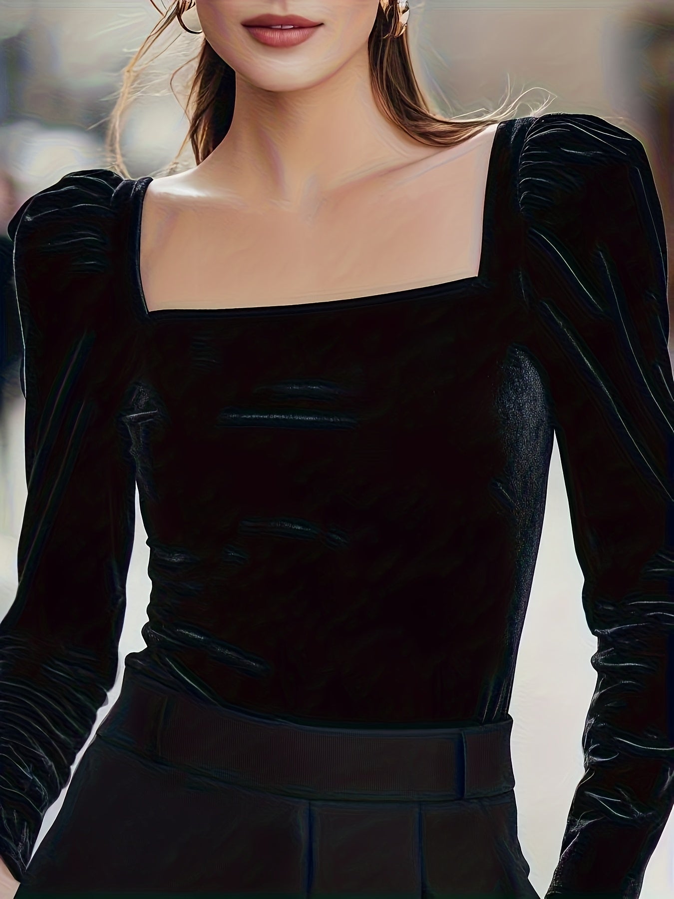 Velvet Square Collar Puff Sleeve Shirt